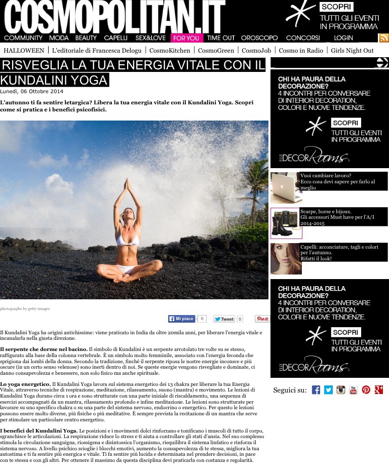 Kundalini Yoga su Cosmopolitan.it